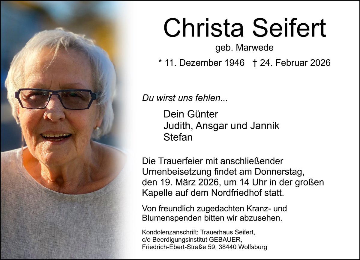 geboren am 11. Dezember 1946 in Ettenbüttel gestorben am 24. Februar 2026 in Wolfsburg