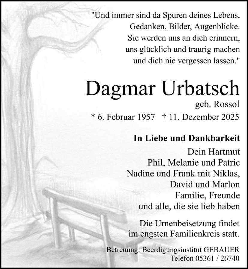 In aufrichtiger Anteilnahme Beerdigungsinstitut GEBAUER