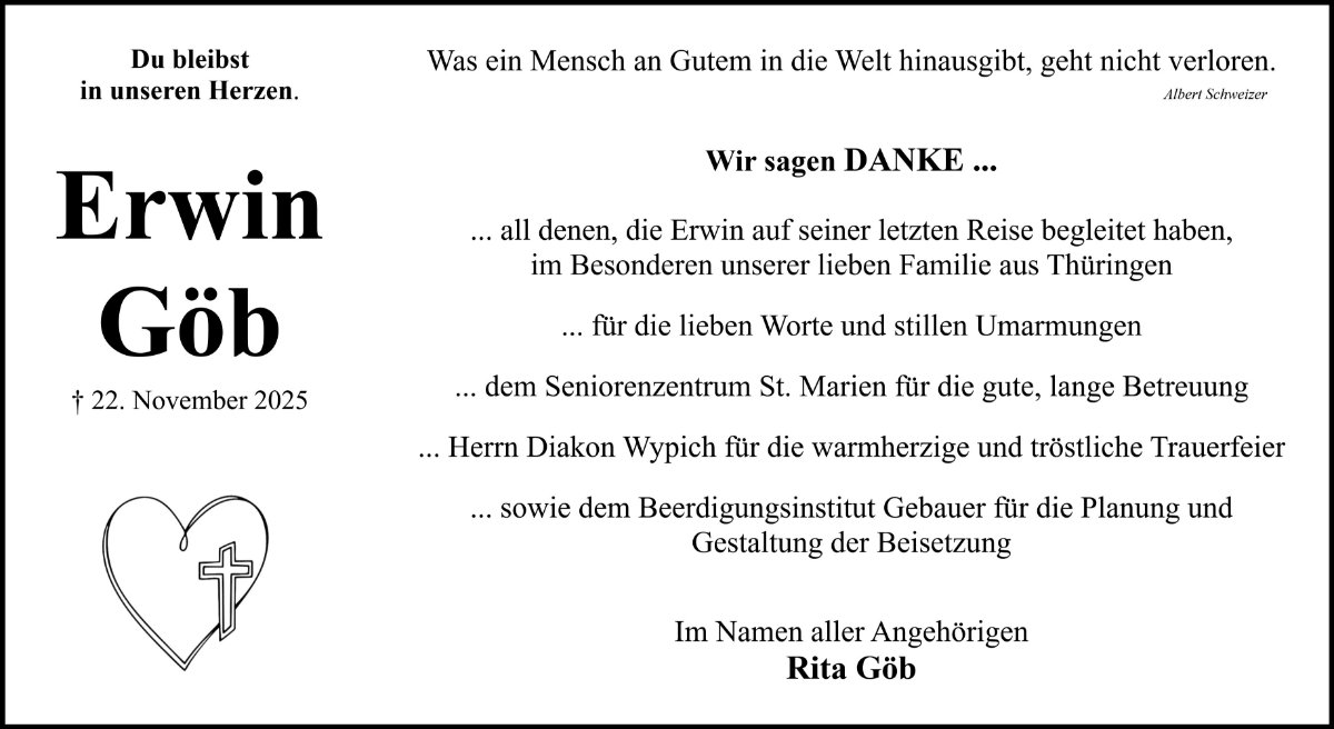 in dieser Zeit des Schmerzes wünschen wir Ihnen Kraft, den Verlust im Kreise Ihrer Liebsten zu verarbeiten. Als Zeichen unserer Anteilnahme und des Gedenkens entzünden wir dieses erste Licht. Damit all das Gute, dass von diesem Menschen ausging, für immer hier bleibt und Sie erkennen, welch unglaubliches Geschenk schöne Erinnerungen sein können.