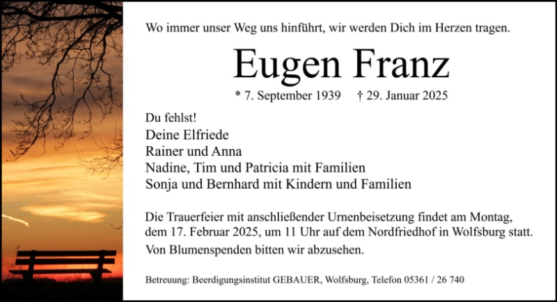 In aufrichtiger Anteilnahme Beerdigungsinstitut GEBAUER