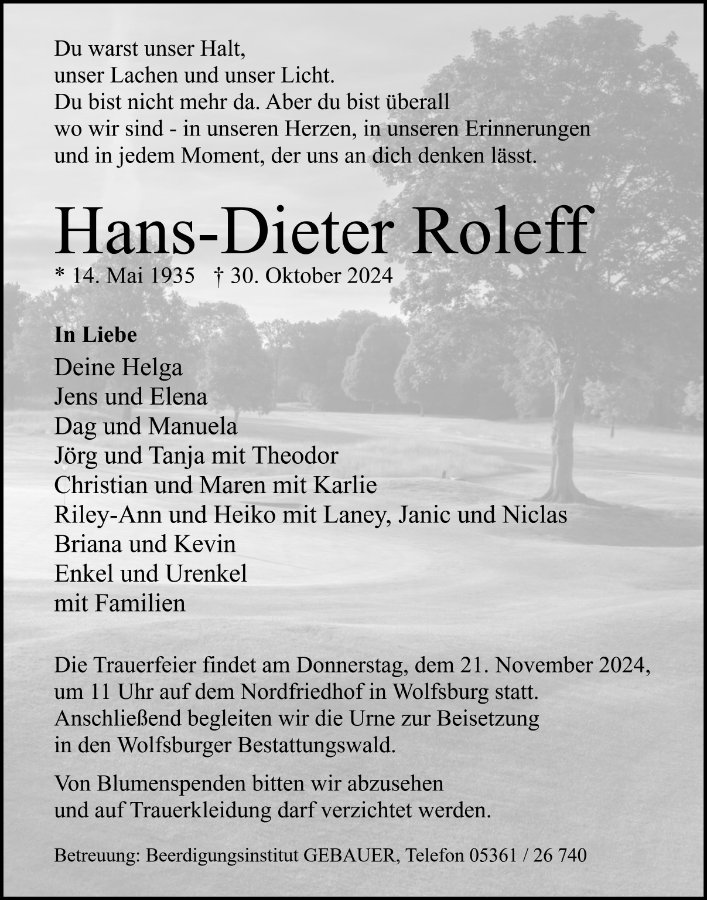 Lieber Dieter,Nun müssen wir lernen ohne dich zu leben.Mit schönen Erinnerungen bleibst du in Herzen Und Gedanken. Traurig nehmen wir Abschied.Christa und Ewald