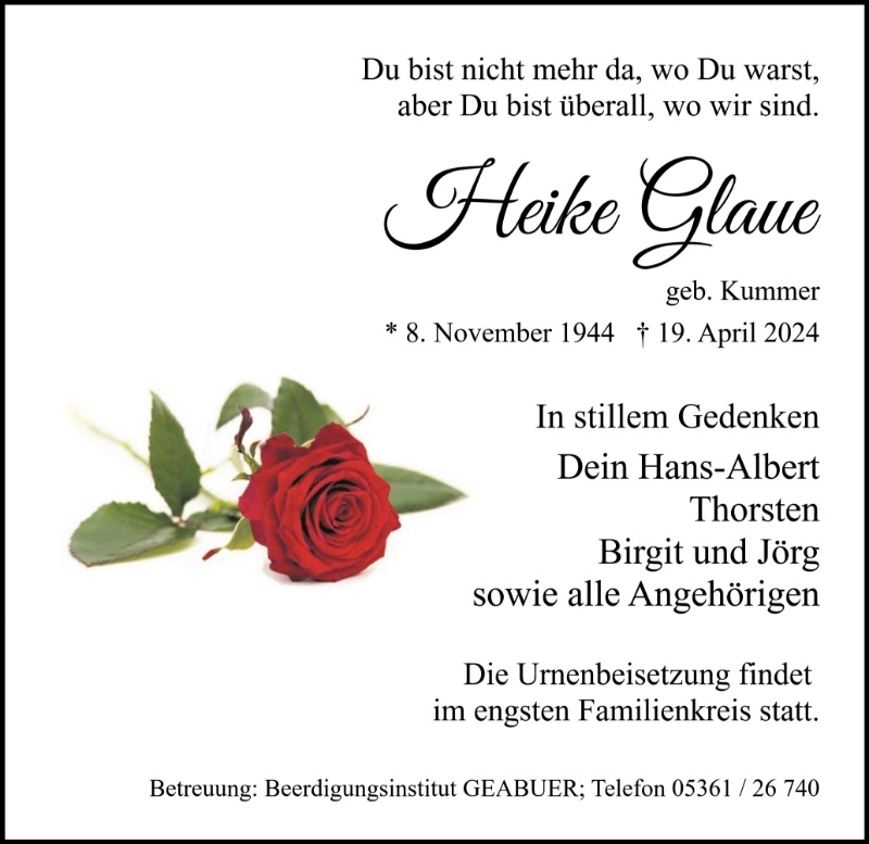 Lieber Hans-Albert, lieber Thorsten, liebe Birgit ! Von Dir, Birgit, erhielten wir die traurige Nachricht, dass unsere liebe Heike von uns gegangen ist. Obwohl das abzusehen war, hat es uns doch sehr erschüttert, und wir möchten Euch hiermit sagen, wie sehr wir mit Euch fühlen. Wir bedauern sehr, dass sich wegen widriger Umstände, Pandemie, Krankenhausaufenthalte und gesundheitliche Folgen keine Möglichkeit mehr ergeben hat, Heike nochmal besuchen zu können. Seid ganz lieb gegrüßt. Eure Anne und Familie