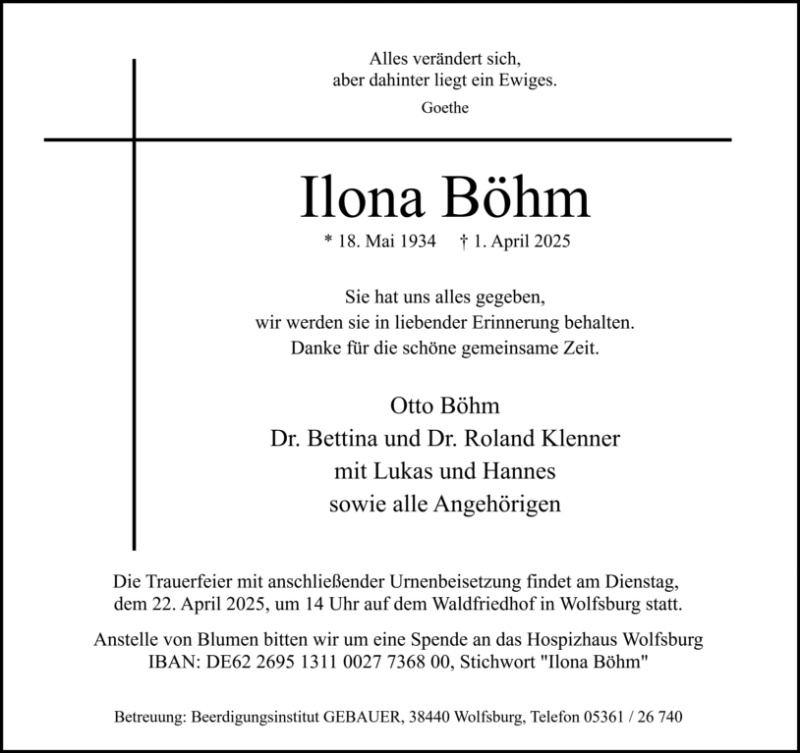 In aufrichtiger Anteilnahme Beerdigungsinstitut GEBAUER