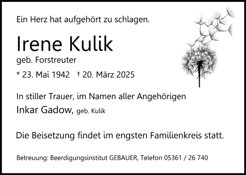 geboren am 23. Mai 1942 in Memel gestorben am 20. März 2025 in Uelzen