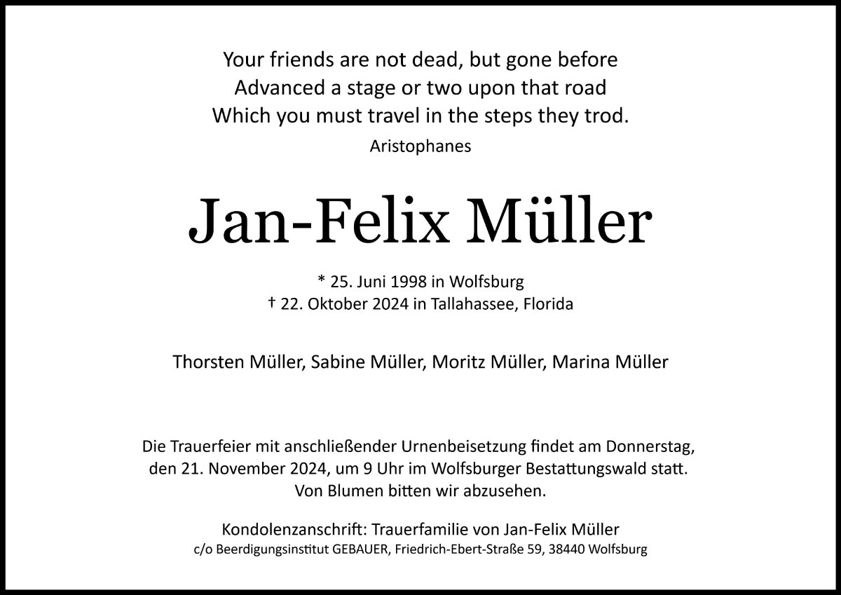 tief erschüttert habe ich die Nachricht vom Tode Jan-Felix erfahren.
