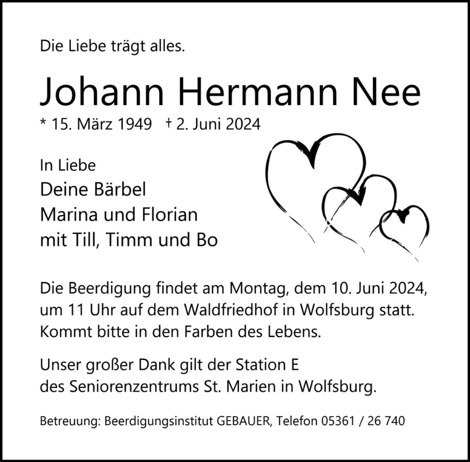 geboren am 15. März 1949 in Papenburg KR Emsland gestorben am 2. Juni 2024 in Wolfsburg
