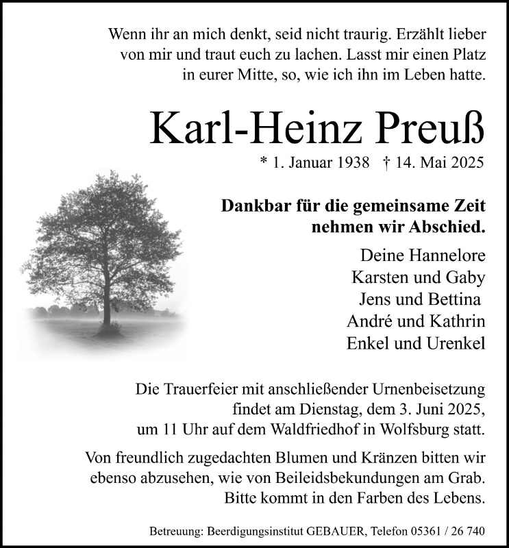 geboren am 1. Januar 1938 in Friedland Kr. Falkenberg OS gestorben am 14. Mai 2025 in Wolfsburg
