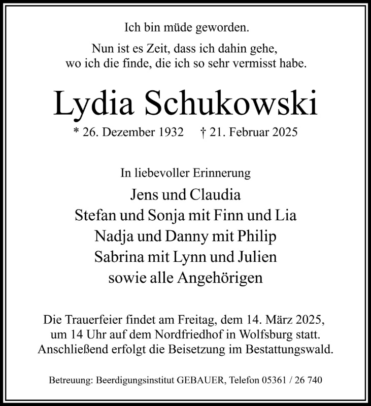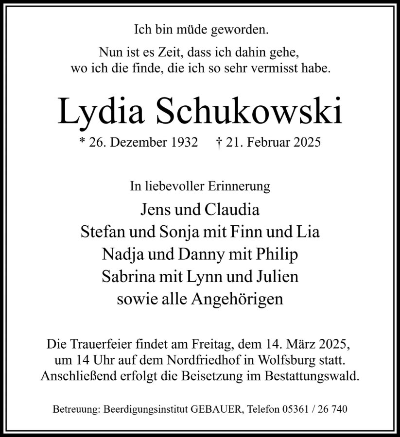 Lydia Schukowski geb. Fuhrmann