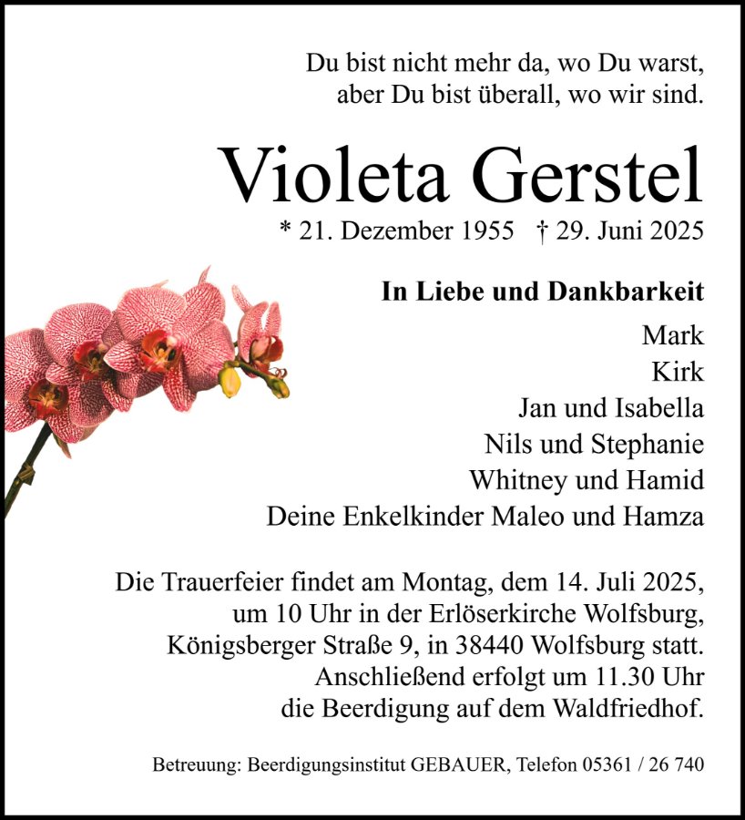 Wir wollen nicht trauern, dass wir Dich