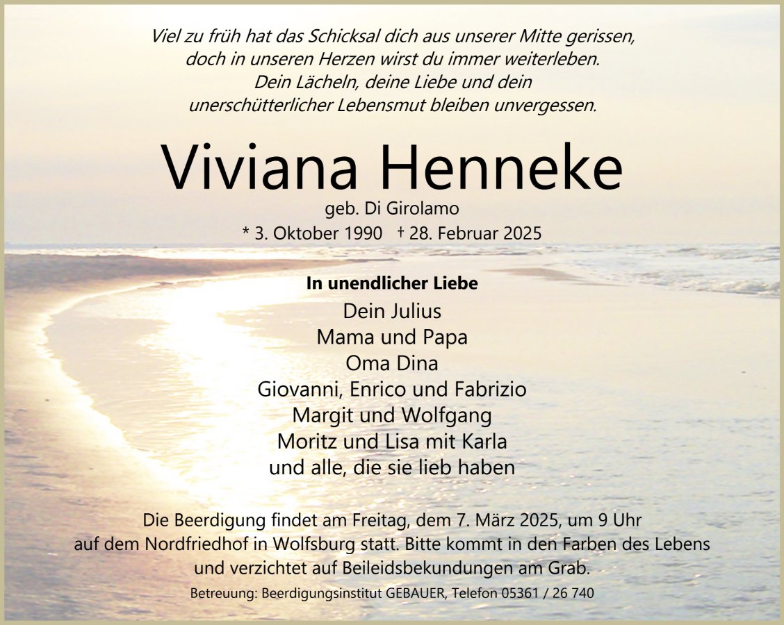 Deiner Familie wünsche ich ganz viel Kraft und Mut nach vorne zu blicken, mit den ganz vielen schönen Erinnerungen und Momenten, die sie mit dir erlebt haben!