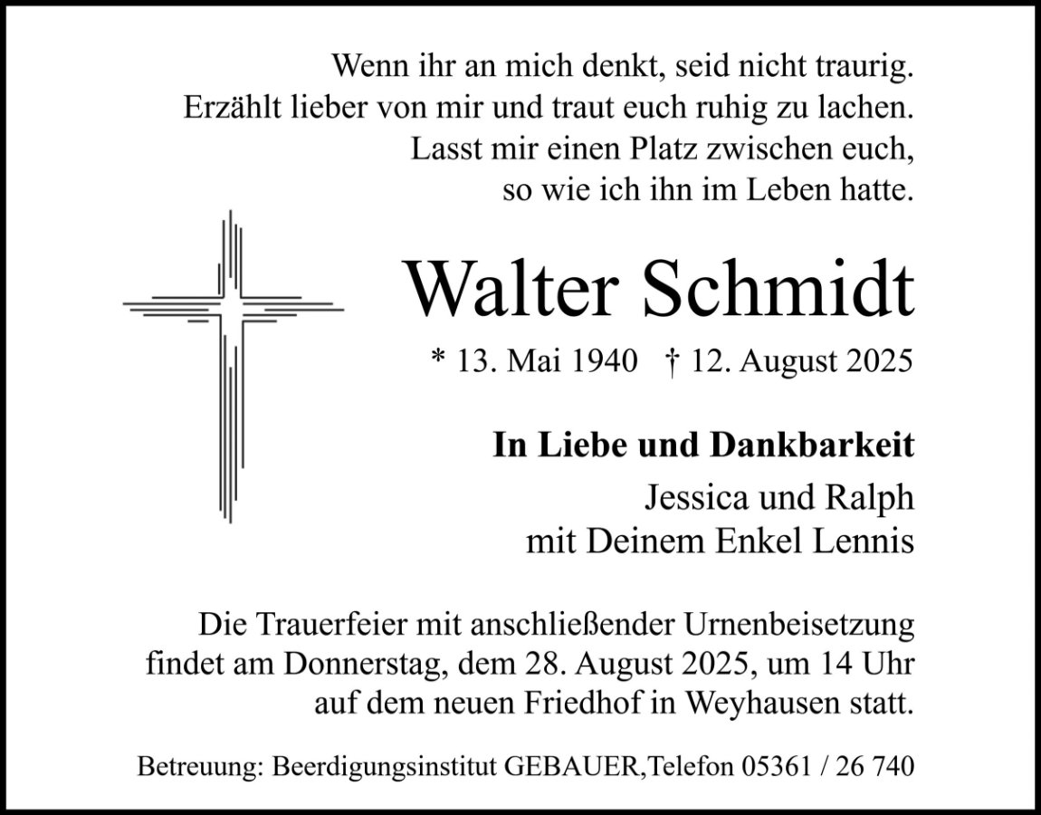 In aufrichtiger Anteilnahme Beerdigungsinstitut GEBAUER