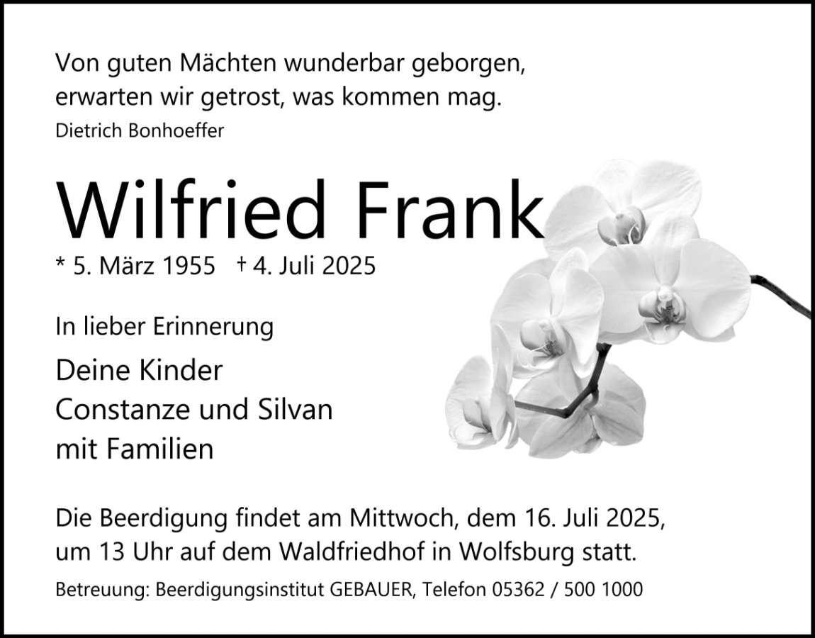 In aufrichtiger Anteilnahme Beerdigungsinstitut GEBAUER